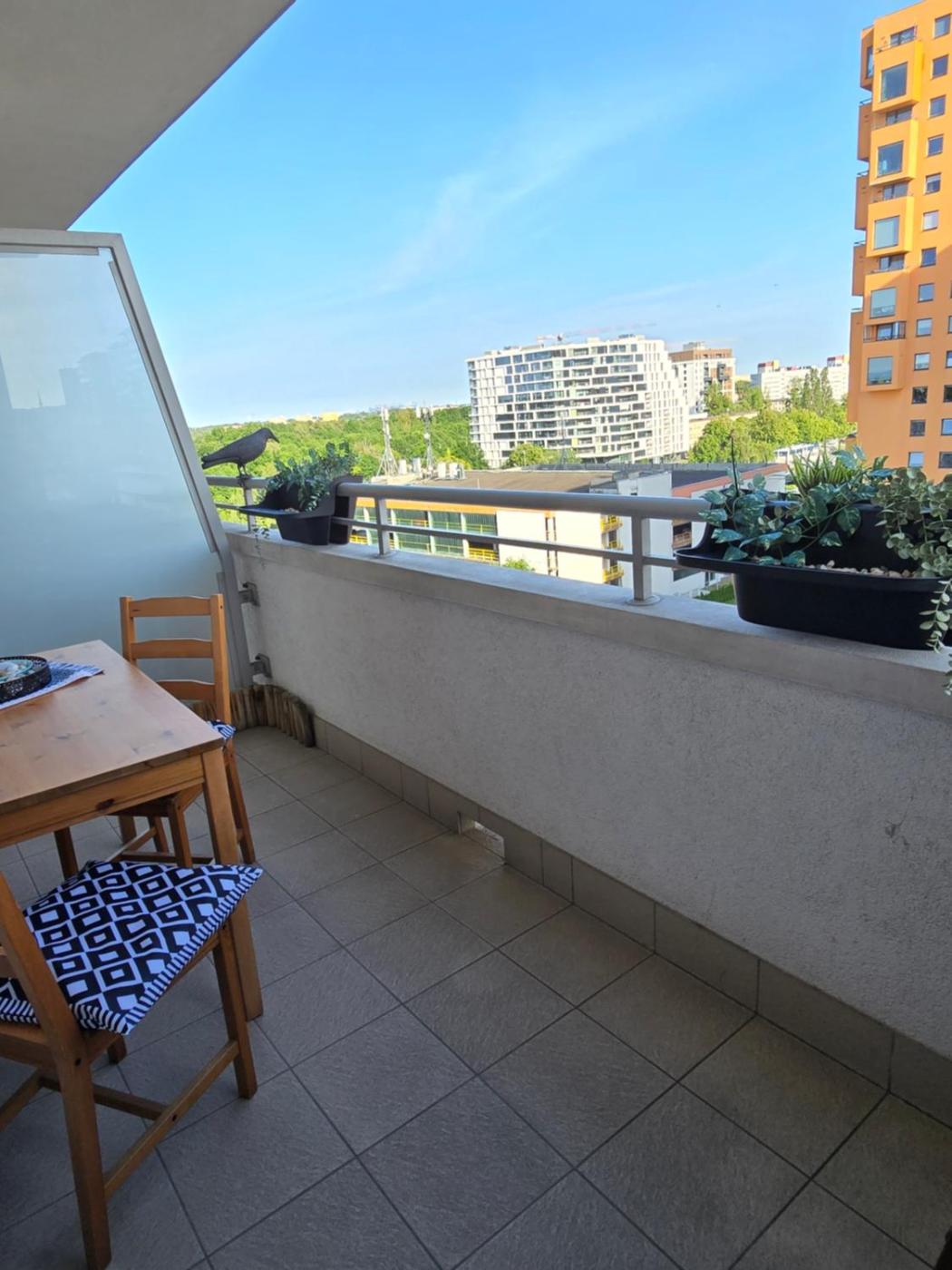 W apartamencie do dyspozycji gości przygotowano balkon, sypialnię (1), salon oraz aneks kuchenny z doskonałym wyposażeniem. Goście mają do dyspozycji telewizor z płaskim ekranem.