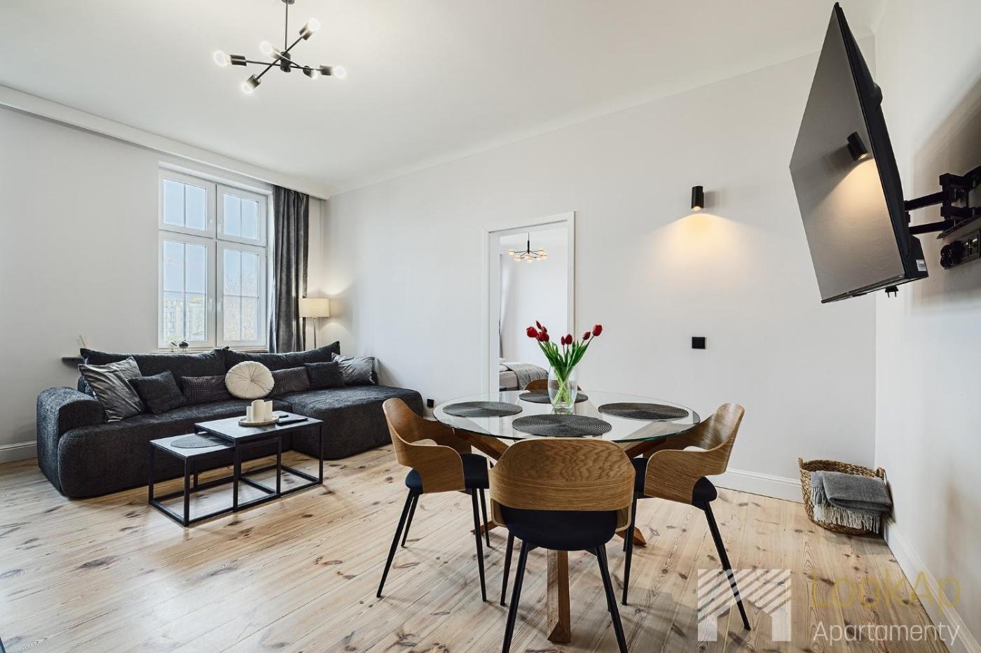 Apartament z 1 sypialnią. This apartment features 1 living room, 1 separate bedroom and 1 bathroom with a bath and free toiletries. Guests can make meals in the kitchenette that has a stovetop, a refrigerator, a dishwasher and kitchenware. This apartment has a washing machine, flat-screen TV, a quiet street view, as well as chocolate for guests. The unit has 3 beds. Apartament - 6 osobowy. Powierzchnia pokoju ok.: 60 mkw.