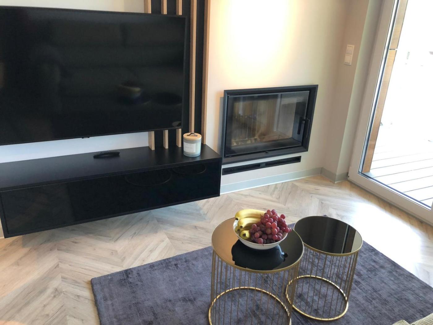 Apartament z 1 sypialnią. The fireplace is the standout feature of this apartment. Boasting a private entrance, this apartment comes with 1 living room, 1 separate bedroom and 1 bathroom with a walk-in shower and a hairdryer. Meals can be prepared in the well-fitted kitchenette, which features a stovetop, a refrigerator, a dishwasher and kitchenware. Featuring a balcony with garden views, this apartment also features a coffee machine and a flat-screen TV. The unit has 2 beds. Apartament - 5 osobowy. Powierzchnia pokoju ok.: 38 mkw.