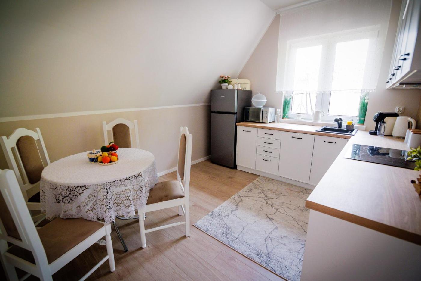 Dom z 2 sypialniami. This holiday homes special features are the pool with a view and the fireplace. Boasting a private entrance, this air-conditioned holiday home includes 1 living room, 2 separate bedrooms and 1 bathroom with a shower. Guests will find a stovetop, a refrigerator, a dishwasher and kitchenware in the kitchen. The holiday home also features a barbecue. Featuring a terrace with lake views, this holiday home also offers a washing machine and a flat-screen TV. The unit has 8 beds. Dom wakacyjny - 9 osobowy. Powierzchnia pokoju ok.: 110 mkw.