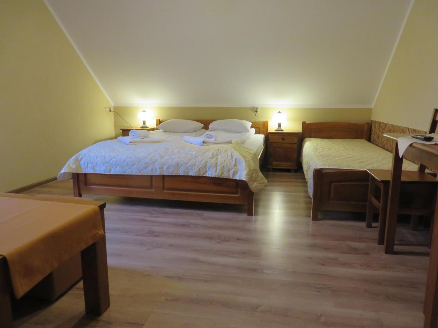 Pokój Trzyosobowy z prywatną łazienką. Ten pokój trzyosobowy wyposażony jest w szafę oraz czajnik elektryczny. Dysponuje on balkonem z widokiem na góry, a także łazienką z prysznicem. W tej opcji zakwaterowania zapewniono 2 łóżka. Pokój Trzyosobowy - 3 osobowy. Powierzchnia pokoju ok.: 25 mkw.