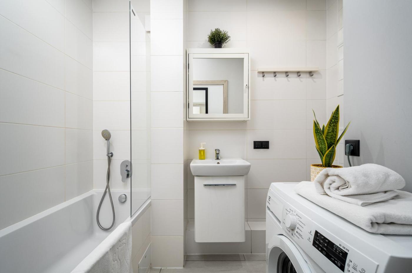 Apartament. This air-conditioned apartment comprises 1 living room, 3 separate bedrooms and 1 bathroom with a bath. Meals can be prepared in the kitchenette, which comes with a stovetop, a refrigerator, a dishwasher and kitchenware. This apartment features a washing machine, a coffee machine, a flat-screen TV and a balcony. The unit offers 3 beds. Apartament - 4 osobowy. Powierzchnia pokoju ok.: 57 mkw.